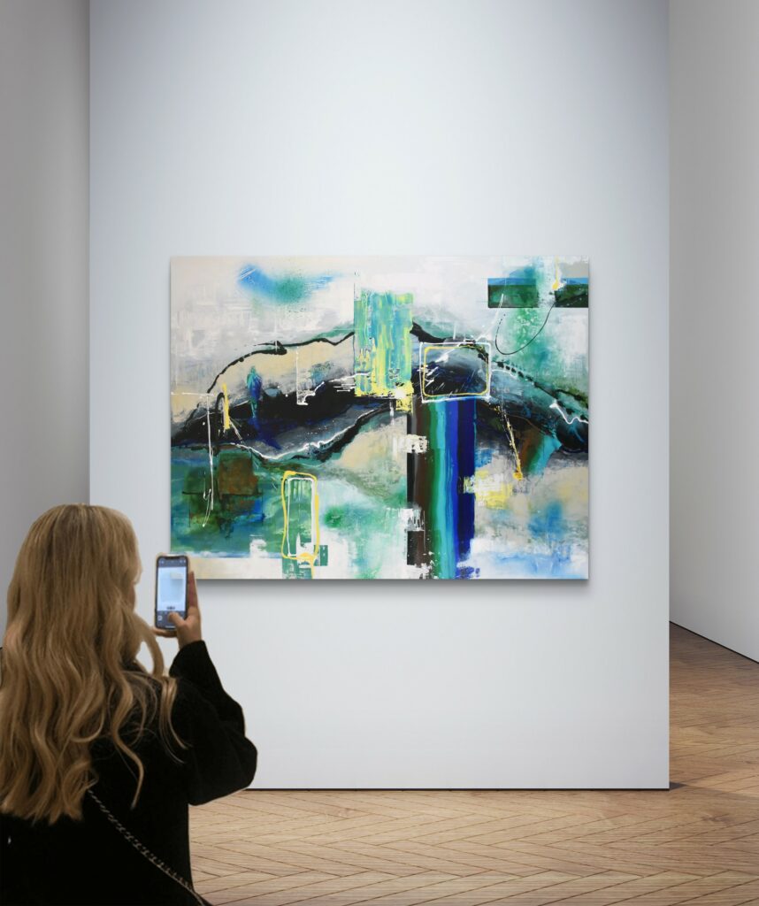 Los tonos de negro y azul ultramar se entrelazan para crear una sensación de profundidad y misterio, donde cada trazo parece contar una historia personal.