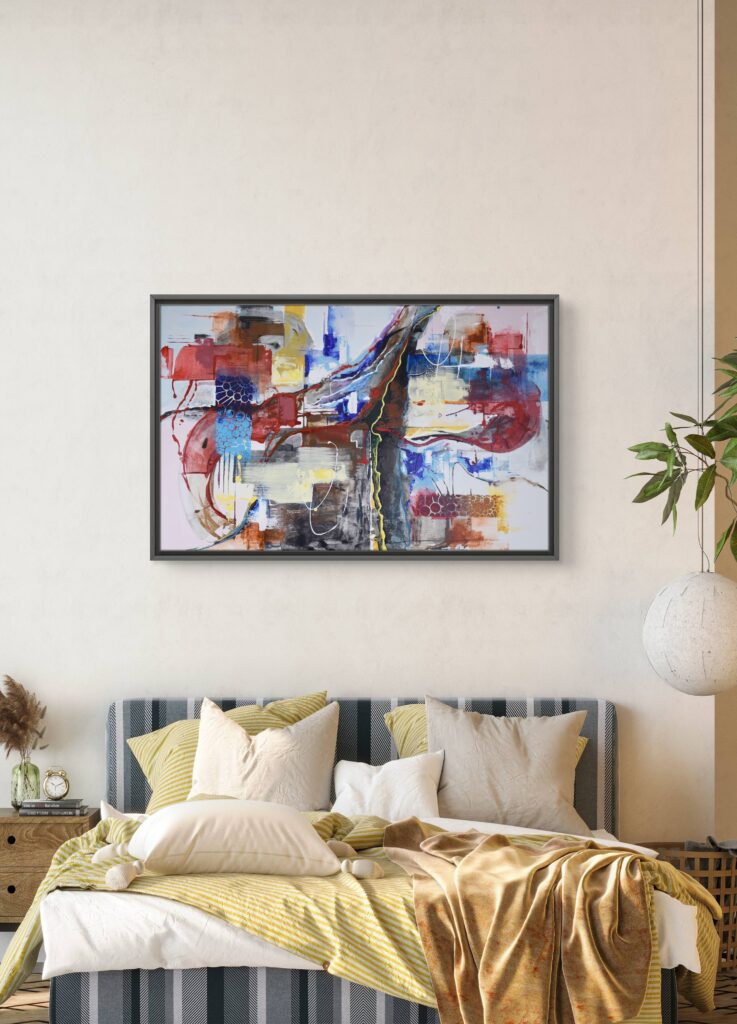 Atmósfera melancólica y vibrante, donde las pinceladas sueltas usadas para delinear las siluetas de los caminantes transmiten el movimiento y la diversidad de la vida en la ciudad.